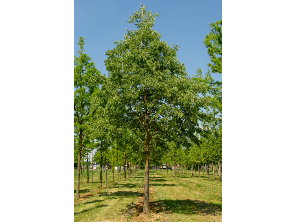 Břestovec jižní (Celtis australis) s obvodem kmene 18–20 cm je vzrostlejší strom s již čitelnou korunou a okamžitým funkčním efektem v prostoru.