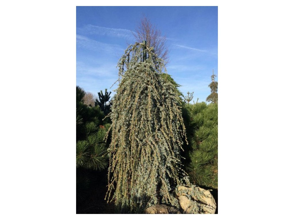Cedr libanonský 'Blue Fountain' (Cedrus libani 'Blue Fountain') ve výšce 100–125 cm je mladý jehličnatý strom s výrazně převislým růstem, který vytváří elegantní a klidný dojem. Patří mezi kultivary ceněné pro svůj architektonický tvar.