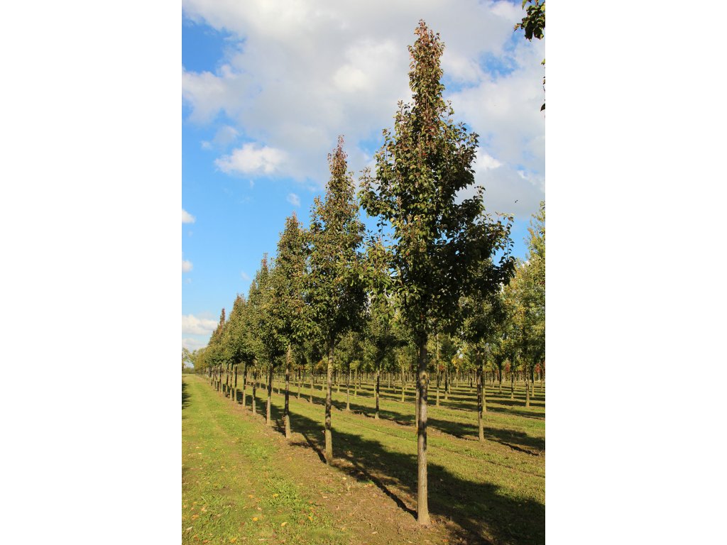Úzká koruna, bílé jarní květy, výrazné podzimní barvy.