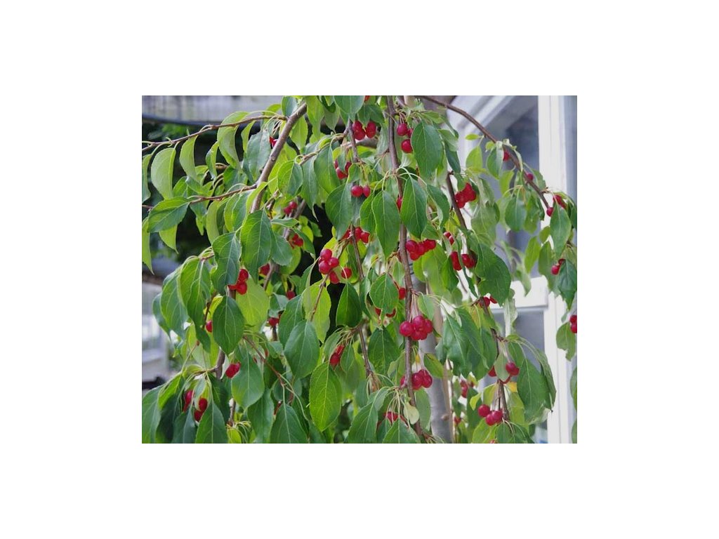 Větve jsou převislé, na jaře kvete, může nasazovat drobné plody.