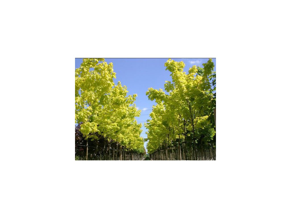 Javor mléč 'Princeton Gold' vyniká jasně žlutým olistěním na jaře.