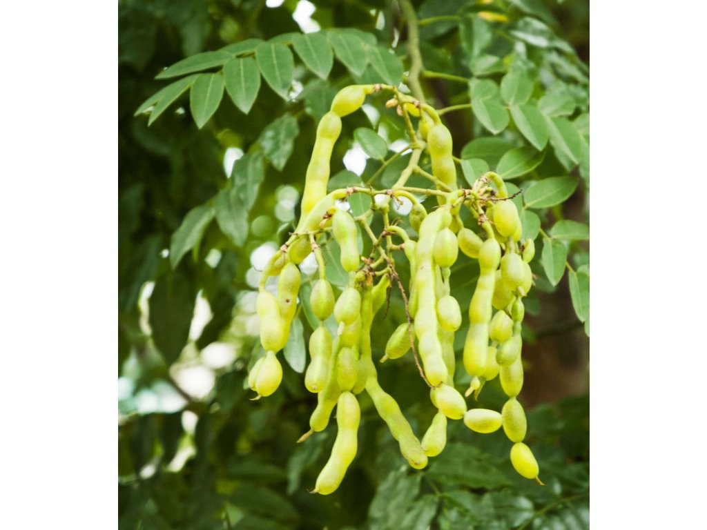 Vytváří široce kulovitou korunu s jemnými, lichozpeřenými listy.
