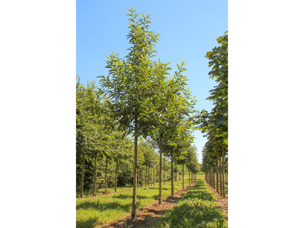 Kaštanovník jedlý (Castanea sativa) s obvodem kmene 18–20 cm je vzrostlejší strom vhodný pro výsadby s rychlejším nástupem efektu.