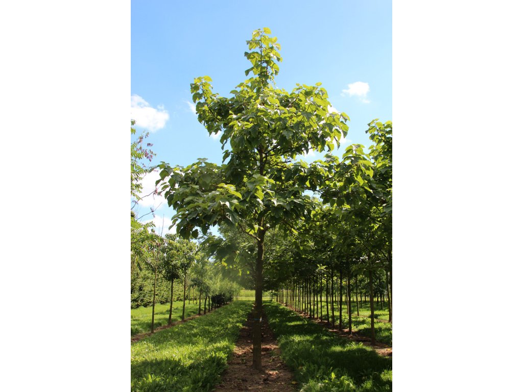 Katalpa trubačovitá (Catalpa bignonioides) s obvodem kmene 10–12 cm je mladý strom známý svými velkými srdčitými listy a výrazným letním kvetením. Patří mezi nápadné okrasné dřeviny využívané především v parcích, městské zeleni a větších zahradách.