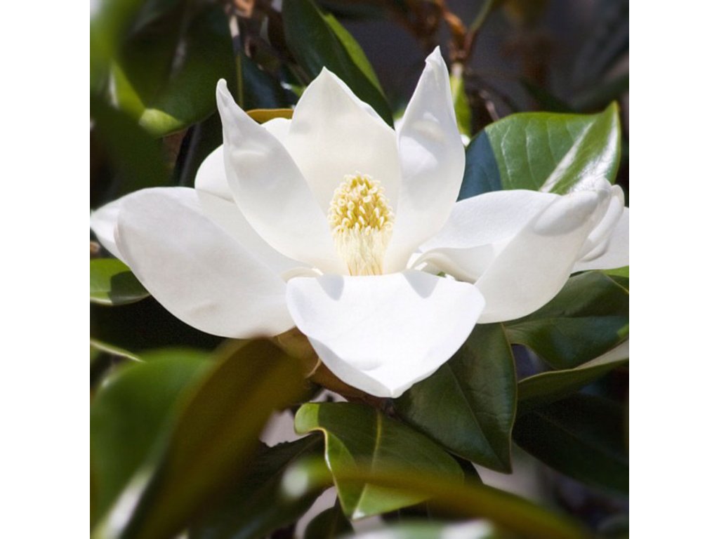 Šácholan velkokvětý (Magnolia grandiflora) ve velikosti 10–12 cm je mladý alejový strom stálezeleného druhu vhodný pro dlouhodobé výsadby.