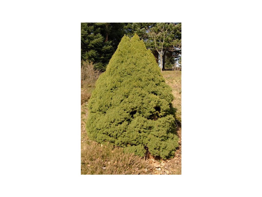 Smrk 'Conica' je pomalu rostoucí kultivar s pravidelným kuželovitým tvarem. Ve výšce 90–100 cm je vhodný i do menších zahrad.